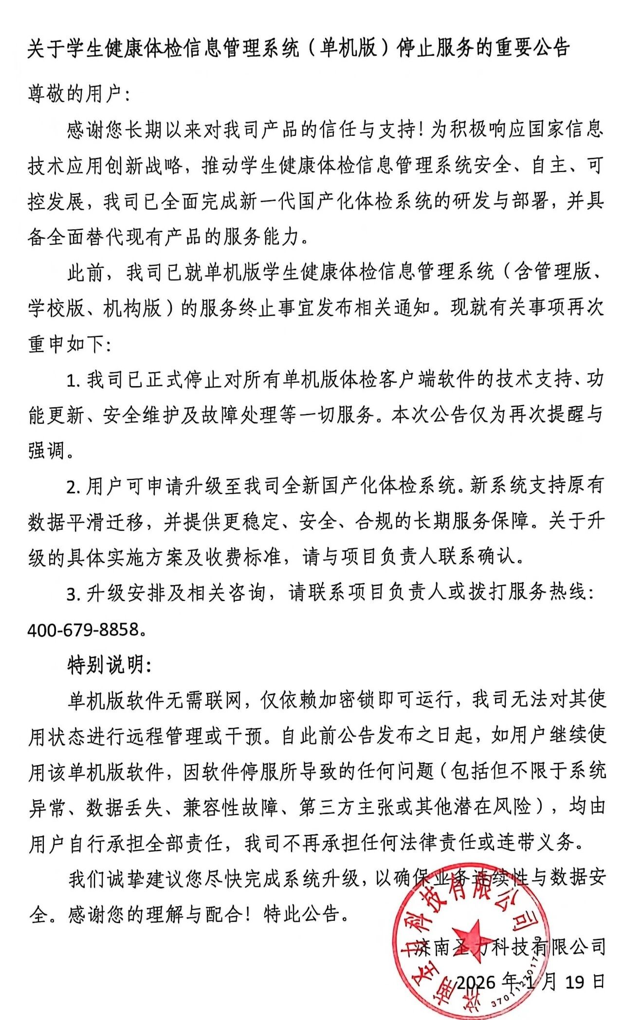 在国家教育部、国家卫计委、中国教科院体卫艺教育研究中心、北京大学儿童青少年卫生研究所、中国学生体质健康调研组、中国疾病预防控制中心等领导、专家的关怀和大力支持下,圣力科技对学校体育、卫生、艺术工作的规范化、科学化管理进行了广泛、细致的调研,严格依据国家推出的最新标准,为国家、省市、区县级教育卫生行政部门成功打造了三十多例成熟在线运行的体育卫生艺术信息化建设项目。公司拥有7大软件产品系列,市场占有率达全国85%以上,公司客户覆盖了全国24个省份,1000多个地市、区县教育或卫生主管部门,近10万多所学校,为我国学校体育卫生艺术信息化建设做出了瞩目的成绩。